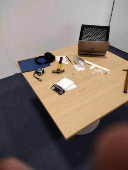 I began with the lower row on the left continuing to use a tool I had made yesterday which made the process of mounting my work easier (distance and levelling) which became a pain to use and eventual downfall as it broke, and threw me off even further from my original plan as none of the new boards were level, horizontal with one another. AHHH FEEEL NOTHING POSITIVE IS HAPPENING AT ALL!!!!!